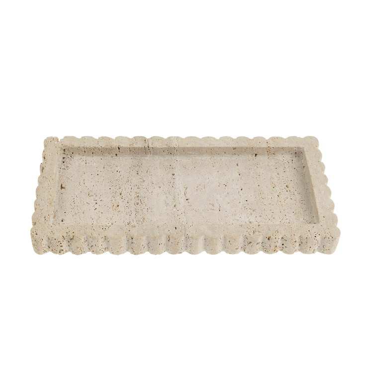 ถาดเสิร์ฟหินอ่อนขนาดใหญ่ทรงโถวสีเบจ ขายดี สำหรับเสิร์ฟอาหาร จัดแสดง และตกแต่งบ้านอย่างมีสไตล์