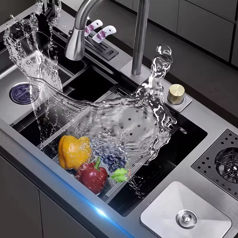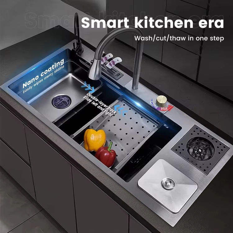 อ่างล้างจานสแตนเลสอเนกประสงค์ ดีไซน์ทันสมัย พร้อมเครื่องกำจัดขยะอัจฉริยะแบบน้ำตก ผลิตด้วยมือ ด้วยเทคโนโลยีนาโน ขายดี