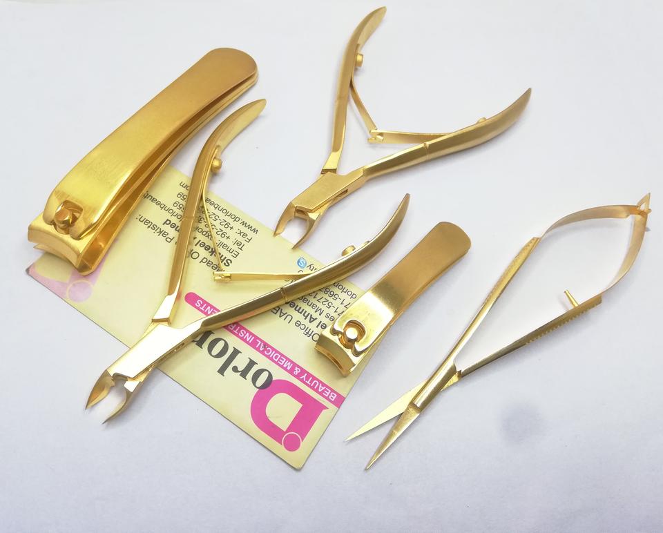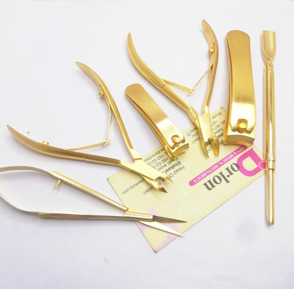ร้อนขายเล็บอุปกรณ์สแตนเลสแมตต์ทอง4มิลลิเมตรและ6มิลลิเมตรกรามเล็บNippersผิวที่ตายแล้วหนังกําพร้าPusherที่กําหนดเองเล็บClippers
