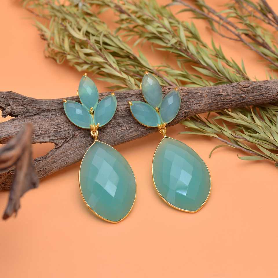 ต่างหูเงินแท้ 925 ประดับพลอยอะความารีนธรรมชาติ ชุบทอง เหมาะสำหรับงานปาร์ตี้ ของขวัญสุดฮิต