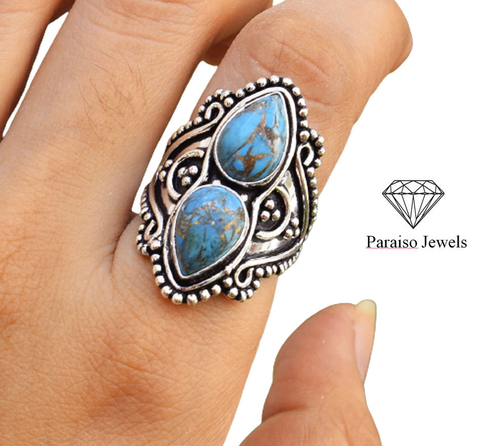 ร้อนขายธรรมชาติสีฟ้าสีเขียวขุ่นแหวน925แหวนชุบเงินขายส่งแหวนสีฟ้าคราม