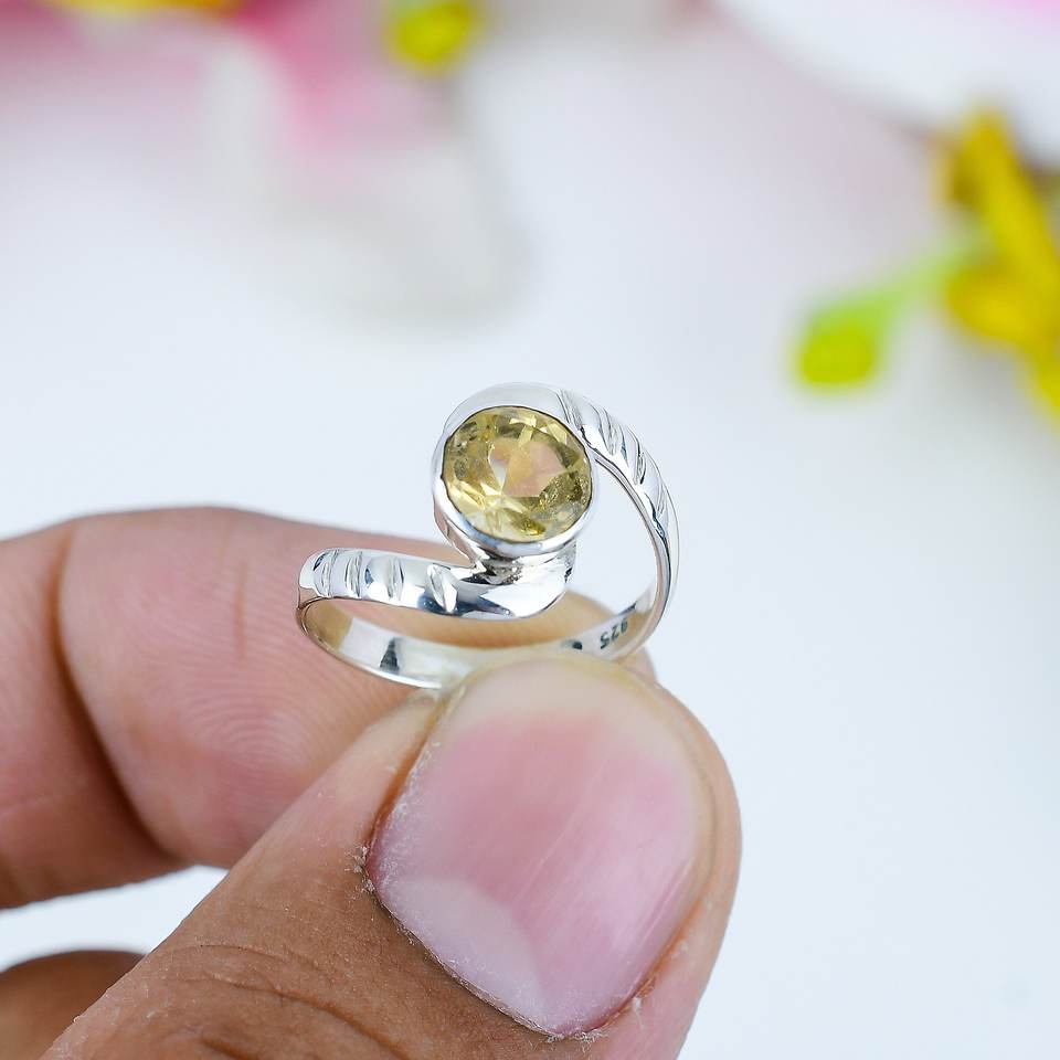 แหวนเงินแท้ 925 ประดับพลอยซิทรินธรรมชาติ | แหวนซิทรินสีเหลืองทำมือสำหรับผู้หญิงขายส่ง