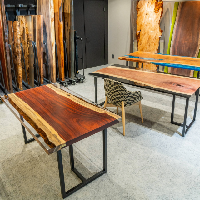 โต๊ะรับประทานอาหารไม้ธรรมชาติโต๊ะทำงานที่ทันสมัยจากญี่ปุ่นโต๊ะไม้แผ่นไม้เรซิ่นอีพ็อกซี่เฟอร์นิเจอร์ญี่ปุ่น