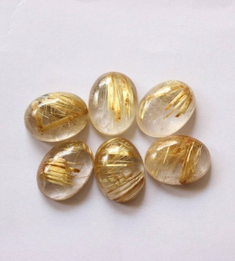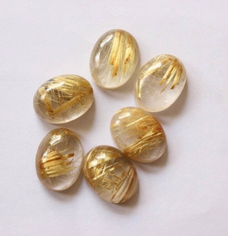 พลอยทรงวงรีทรงหลวมขัดสูง10X14มม. เป็นรูไทล์ทองคำธรรมชาติสำหรับทำต่างหูแหวนเงินทำมือ