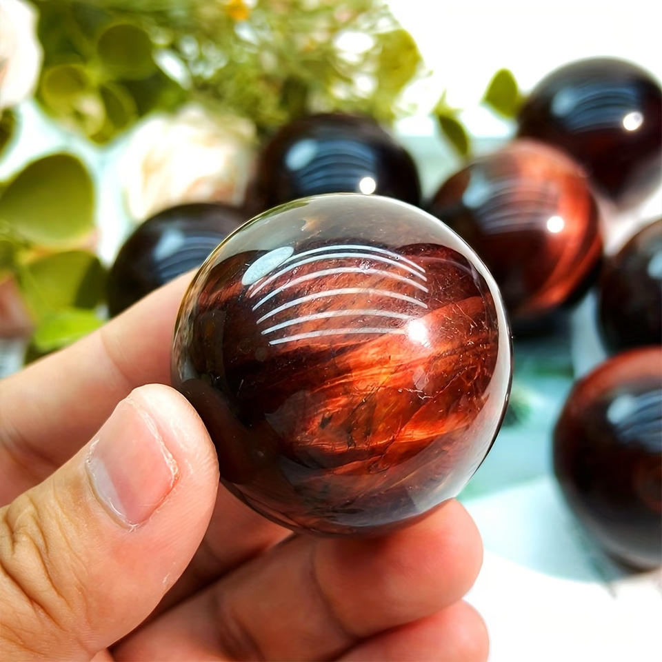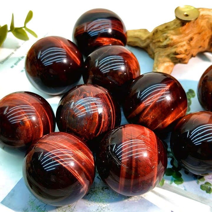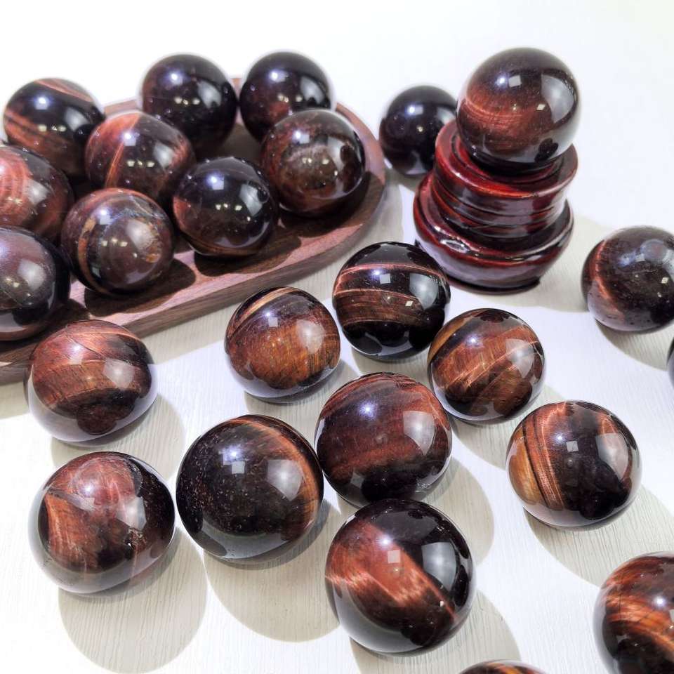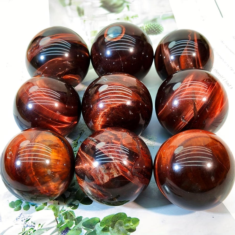หินควอตซ์แกะสลักด้วยมือจากธรรมชาติ หินตาเสือสีแดงทรงกลม สำหรับตกแต่ง ขายดี