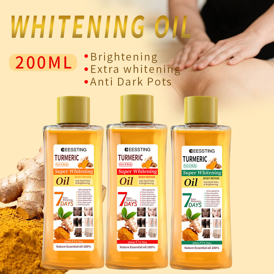 น้ำมันบำรุงผิวขาวใสสูตรสมุนไพรธรรมชาติ 200 มล. ขายดี ผลิตภัณฑ์ไวท์เทนนิ่งผิวกายด้วยขมิ้น ช่วยให้ผิวขาวกระจ่างใสอย่างเป็นธรรมชาติ