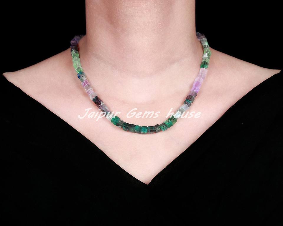 ลูกปัดฟลูออไรต์ธรรมชาติหลายเม็ดรูปทรงลูกบาศก์เรียบ6-7มม. ลูกปัดหินวันเกิดสำหรับทำเครื่องประดับสร้อยคอสำหรับเป็นของขวัญ