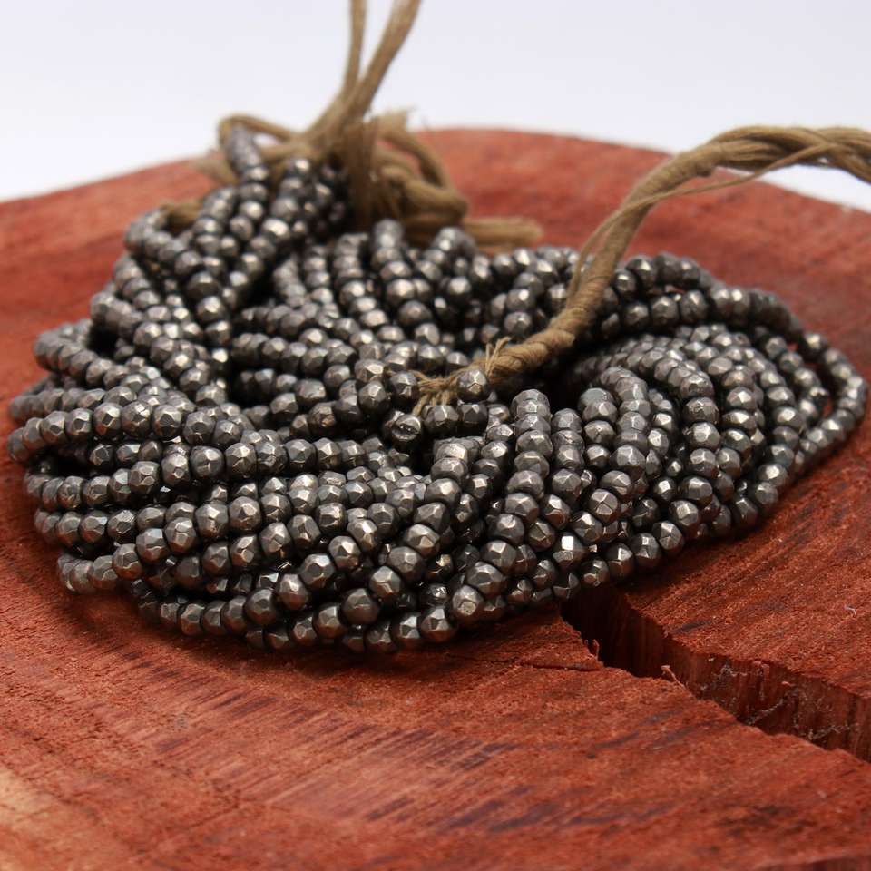 ลูกปัดพลอยทรงกลมไพไรต์ธรรมชาติขนาด13 "เกลียว3- 3.5มม. คุณภาพสูงเครื่องประดับจากธรรมชาติดีไซน์งานฝีมือ