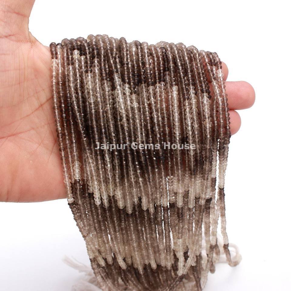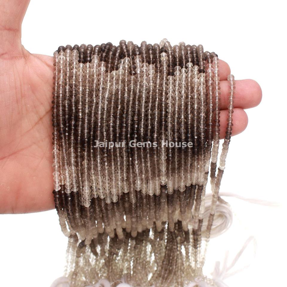 สร้อยคอควอตซ์สโมคกี้เฉดสีน้ำตาลคุณภาพสูง AAA ขนาด 13 นิ้ว ขายดี พร้อมลูกปัดพลอยทรงรอนเดลล์สีน้ำตาลขนาด 3.5 มม.-4 มม.