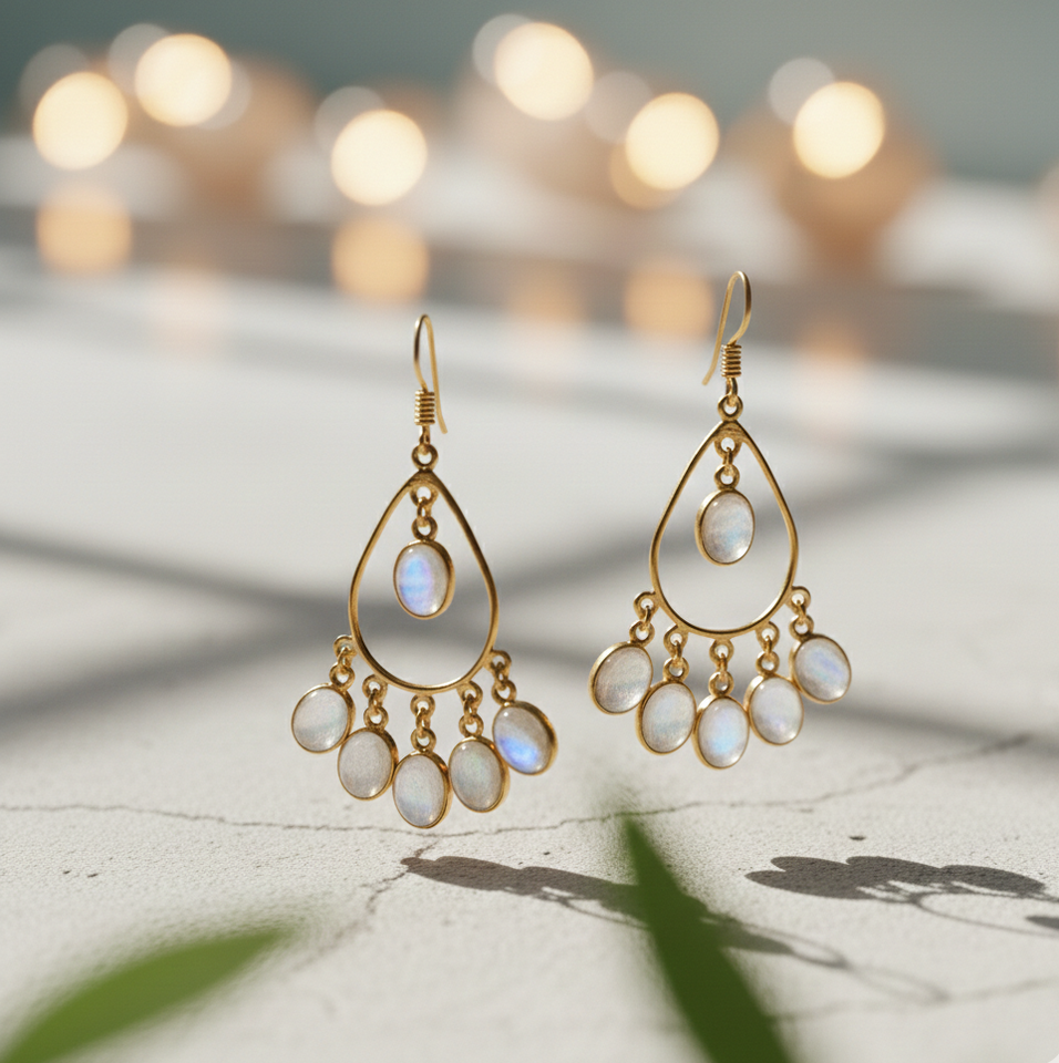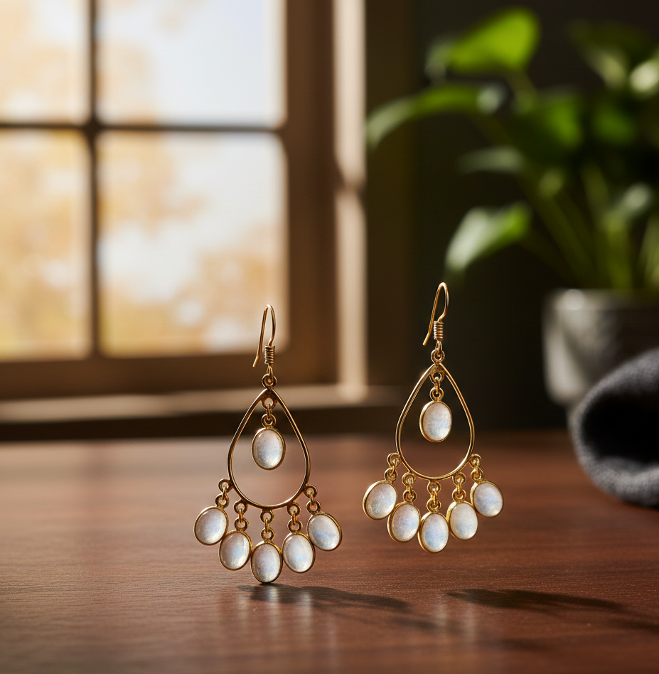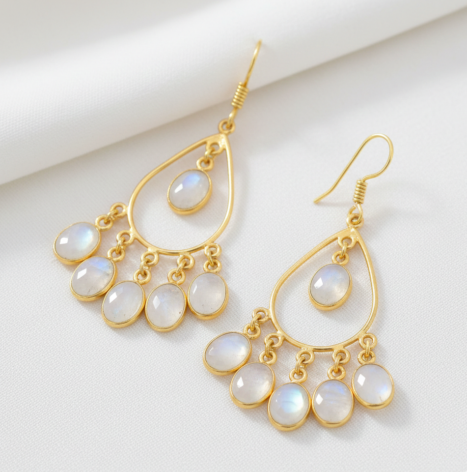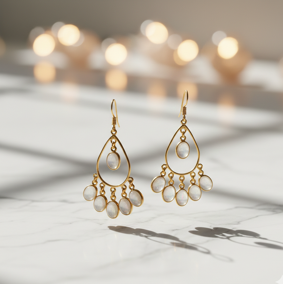ต่างหูรูปวงรีสีขาวรุ้งธรรมชาติขายดี ทำจากเงินแท้ 925 ชุบทอง 18K แบบห้อย เหมาะสำหรับใส่ไปงานปาร์ตี้