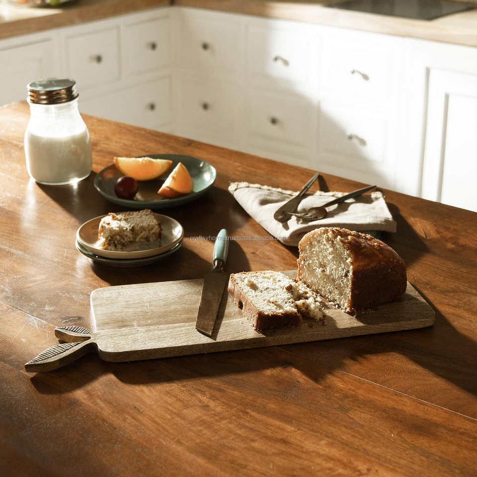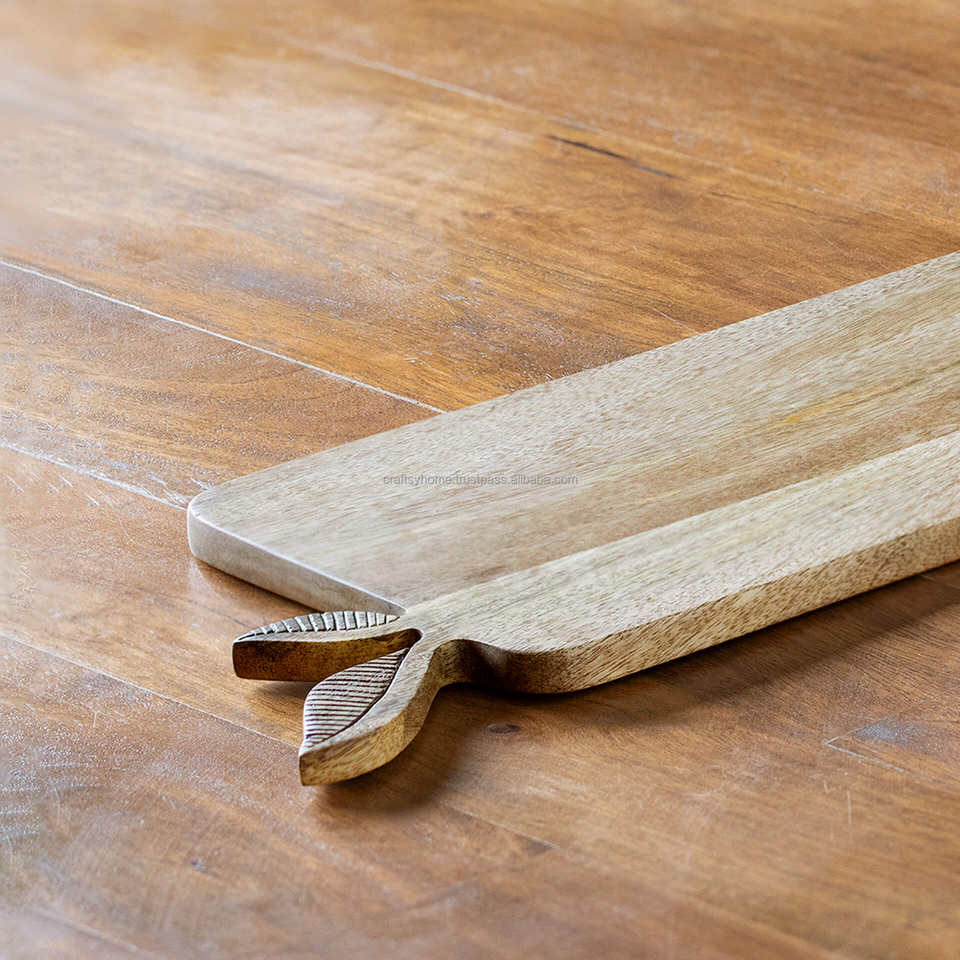เขียงไม้ธรรมชาติมีด้ามจับทรงใบไม้เป็นมิตรต่อสิ่งแวดล้อมไม้ไผ่ตกแต่งห้องครัวสำหรับผักชีสเนื้อ