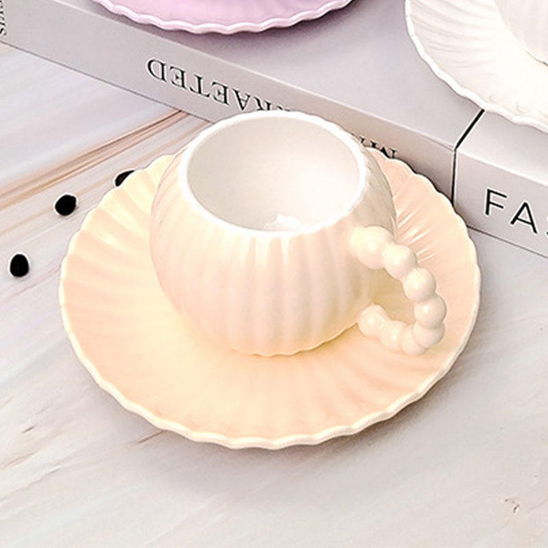 แก้วกาแฟเซรามิกรูปเปลือกหอย3D ใหม่แก้วมักพร้อมจานรองลายครามน่ารักทันสมัย