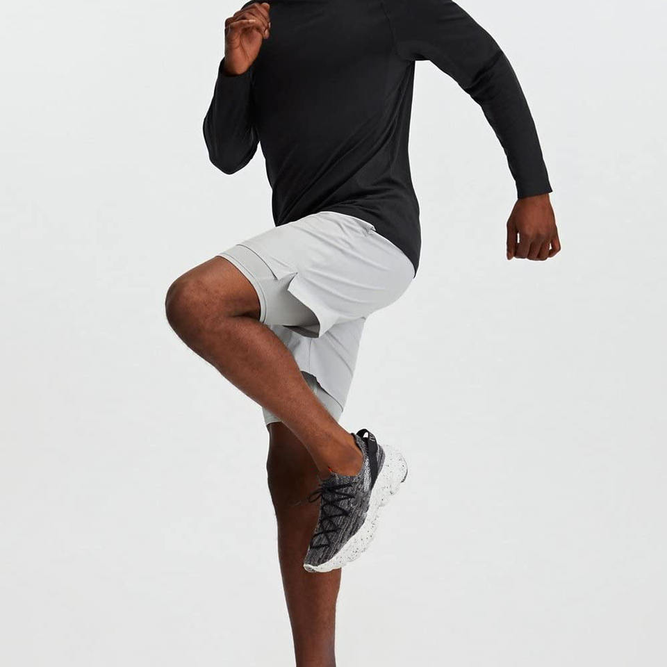 กางเกงขาสั้นออกกำลังกายของผู้ชายสีทึบระบายอากาศได้ดี2024มีสไตล์