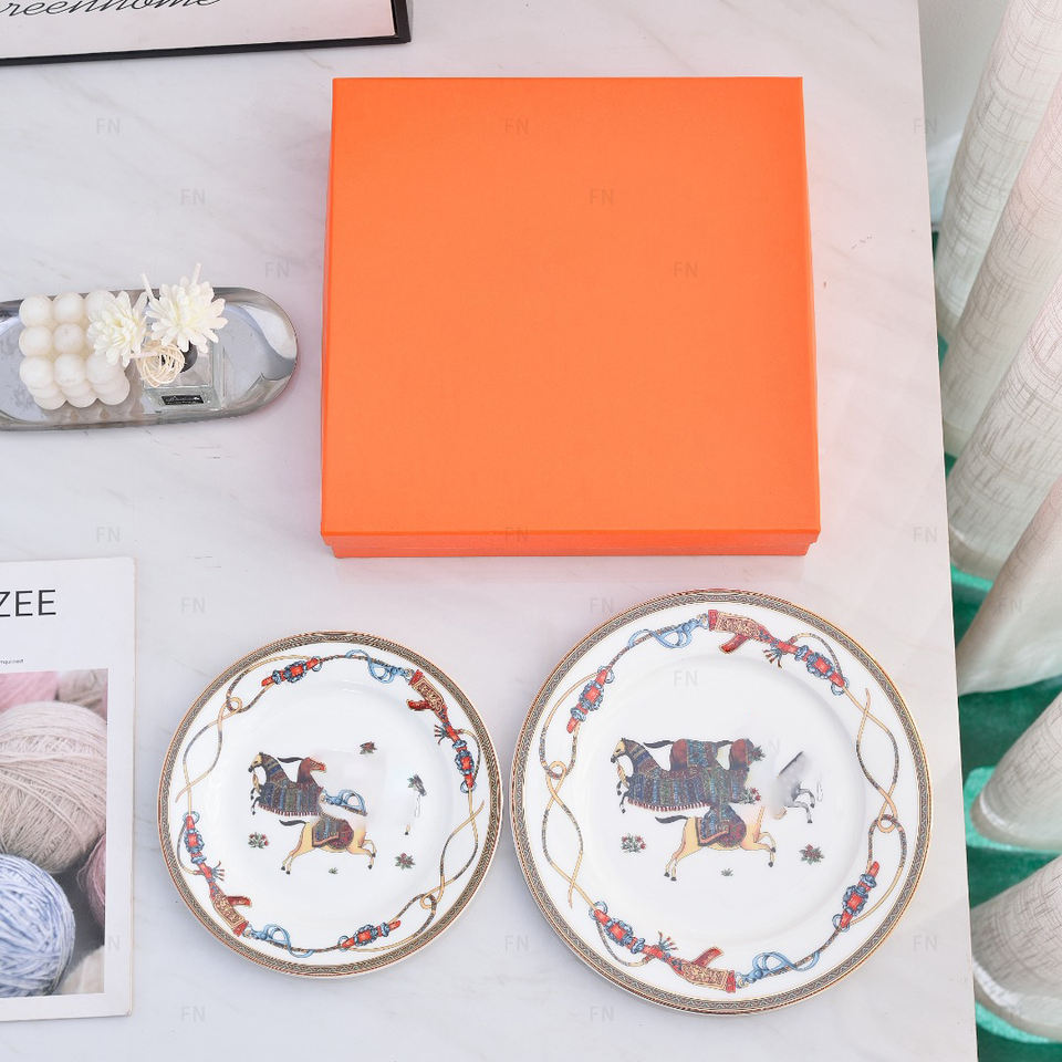 ชื่อแบรนด์:Simple Plant Pattern 2pcs Porcelain Dinner Plate