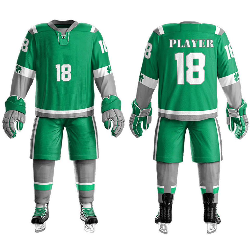 ชุดฮอกกี้น้ำแข็งขายดี รับออกแบบโลโก้ตามสั่ง (OEM) สำหรับผู้ใหญ่ ระบายอากาศได้ดี แห้งเร็ว น้ำหนักเบา ป้องกันแบคทีเรีย ผลิตจากโพลีเอสเตอร์ 100%