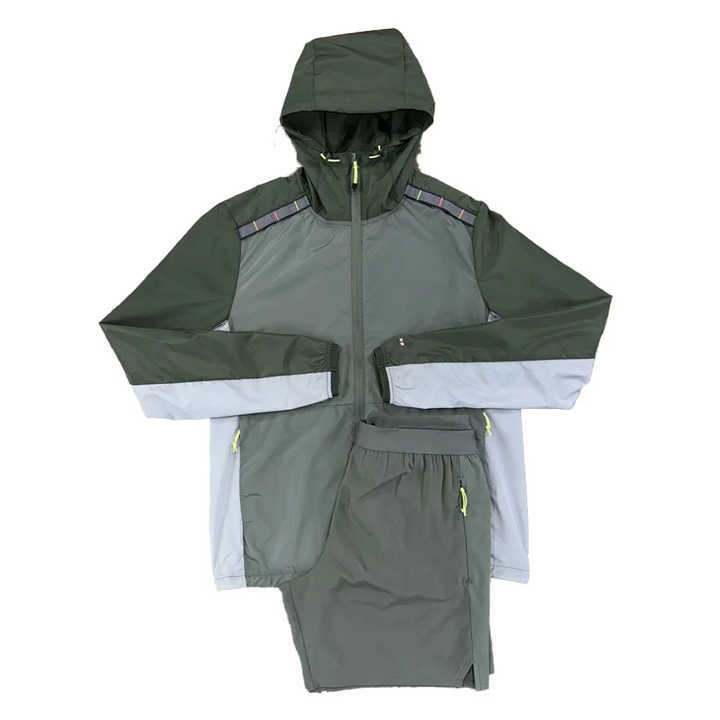 ชุดเซ็ตเสื้อฮู้ดกันลมและกางเกงขาสั้นสำหรับผู้ชาย รุ่นขายดี ผลิตตามสั่ง (OEM) คุณภาพพรีเมียม ผ้าไนลอน ซิปแบบรูด มีฮู้ด สินค้ามาใหม่