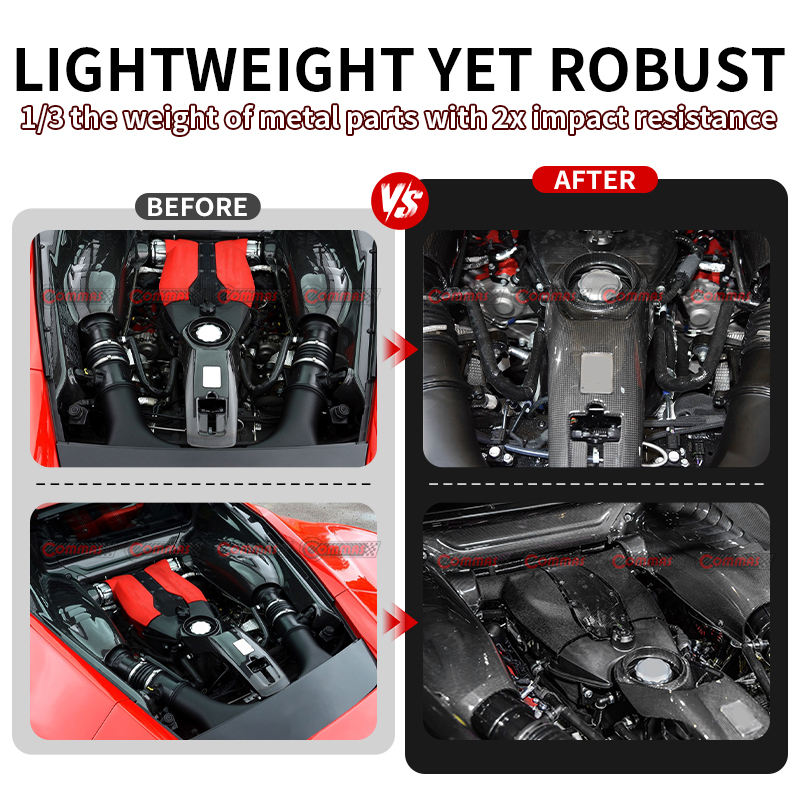 ชุดแต่งภายในห้องเครื่องยนต์คาร์บอนไฟเบอร์แบบแห้ง สไตล์ OEM ขายดี สำหรับ Ferrari F8 ฝาครอบห้องเครื่องยนต์ อะไหล่ตัวถัง