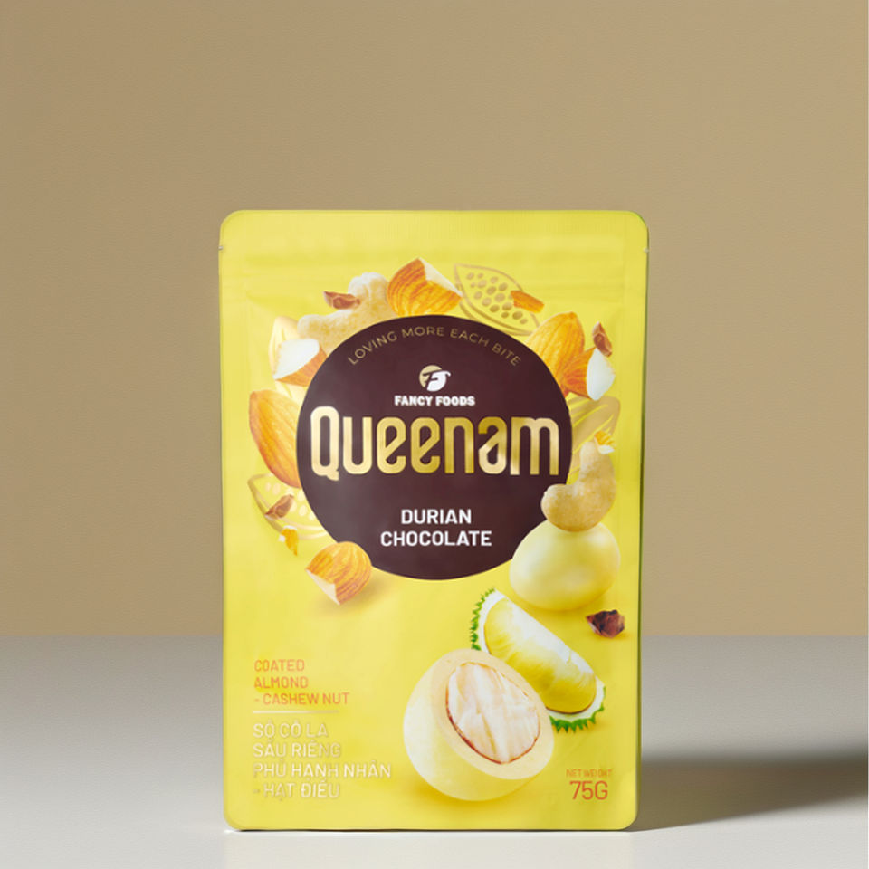 เม็ดมะม่วงหิมพานต์อัลมอนด์75g queenam ช็อคโกแลตทุเรียนเคลือบช็อคโกแลต