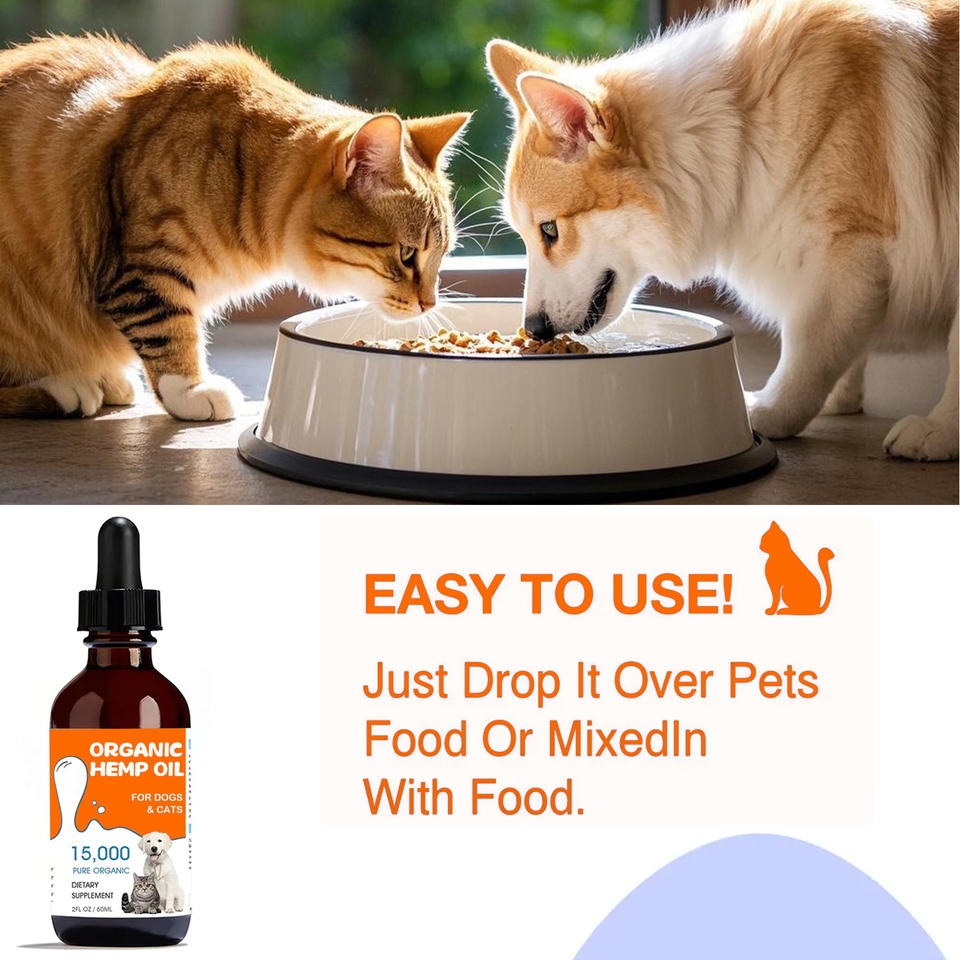 น้ำมันกัญชาสำหรับสัตว์เลี้ยงออร์แกนิกสำหรับบรรเทาอาการปวดภูมิคุ้มกันการแยกความวิตกกังวลของสุนัขและแมวหยด