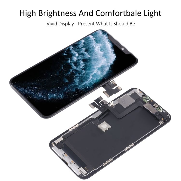 หน้าจอ LCD ของแท้สำหรับ iPhone 11 Pro Digitizer ประกอบครบชุดพร้อมสายยืดหยุ่นสำหรับลำโพงหูฟัง