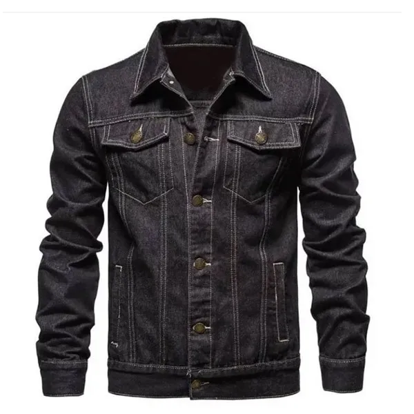 แจ็กเก็ตผ้ายีนส์สำหรับผู้ชายเสื้อแจ็กเก็ตผ้าเดนิมโมคสีพื้นสำหรับฤดูหนาวสวมใส่สบายกลางแจ้งมีแบรนด์ตามสหรัฐอเมริกา