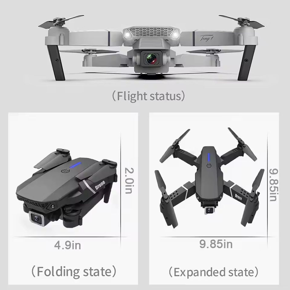โดรน E88กลางแจ้งพร้อมไวไฟ FPV 5g 4K HD กล้องคู่ RC Quadcopter สำหรับโดรนแบบไร้แปรงขนาดเล็กพับได้ E88แบบพกพา