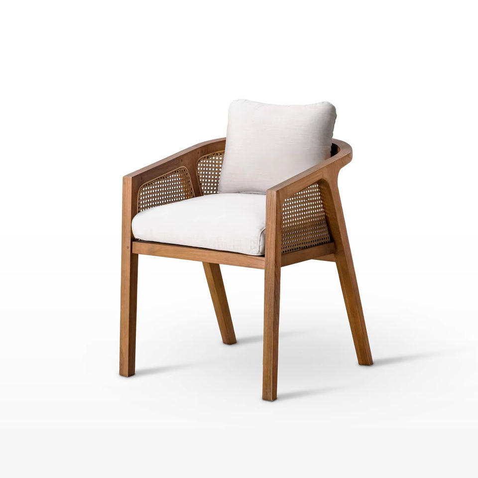 เก้าอี้ไม้สักกลางแจ้งเก้าอี้รับประทานอาหารเดี่ยวกันน้ำกันแดดป้องกันการกัดกร่อนวิลล่าโต๊ะและเก้าอี้