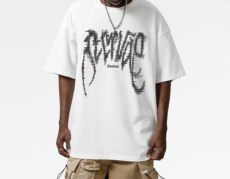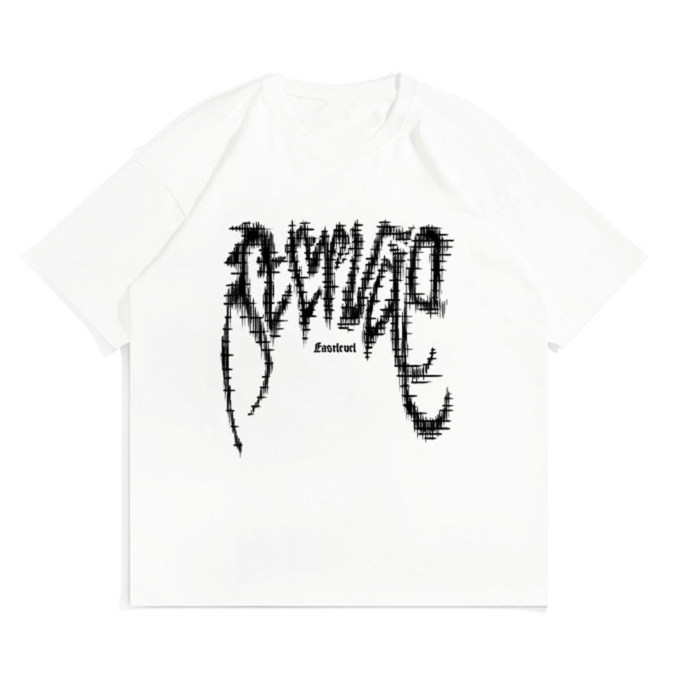 เสื้อยืดโอเวอร์ไซส์ลายพิมพ์อเมริกันสำหรับทุกเพศ ขายดี ผ้าโพลีเอสเตอร์ทวิล แขนสั้นทรงหลวม เสื้อยืดคู่รักสไตล์ทางการ