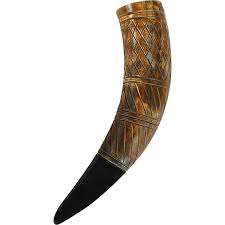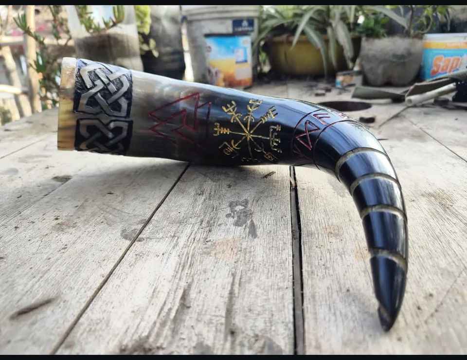 เขาควายแกะสลักลายไวกิ้งยุคกลาง ขายดี พร้อมขาตั้งเหล็ก สำหรับดื่มเบียร์ เขาธรรมชาติ ราคาถูก