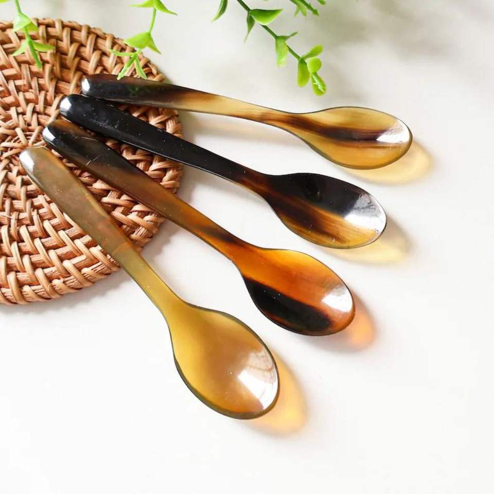 ช้อนเขาวัวทำด้วยมืออุปกรณ์ทำจากเขาควายธรรมชาติสำหรับไอศกรีมและขนมหวานเครื่องใช้บนโต๊ะอาหารปรับแต่งได้