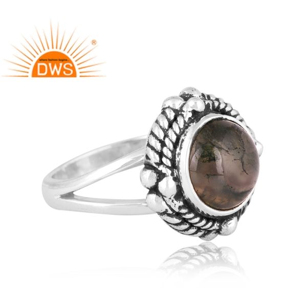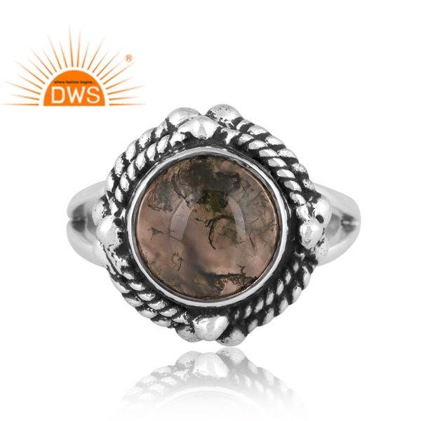 แหวนแยกอัญมณีมอสอาเกตเงินธรรมชาติสีเงินออกซิไดซ์