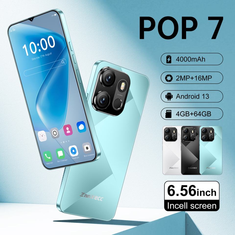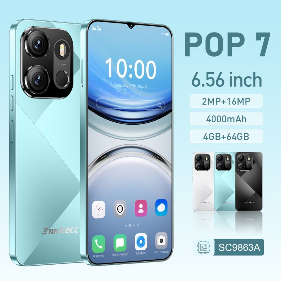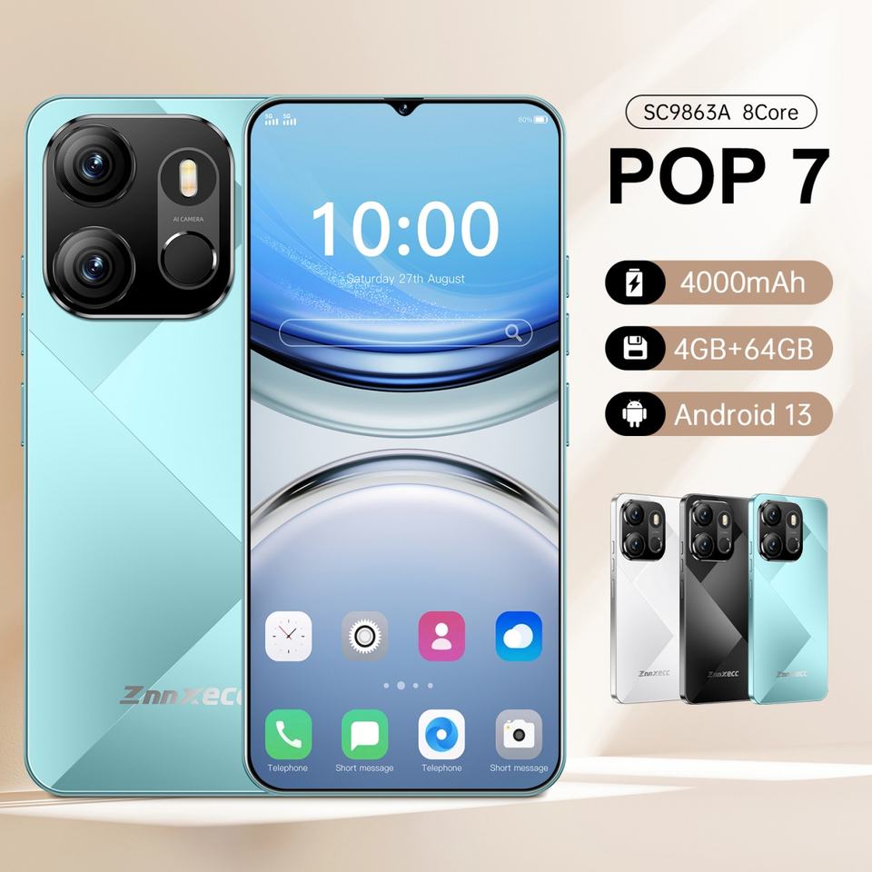 โทรศัพท์มือถือ POP7 4GB + 64GB LTE ระบบเดิม CPU หน้าจอ HD การรับรองโดย Google รองรับทั่วโลก