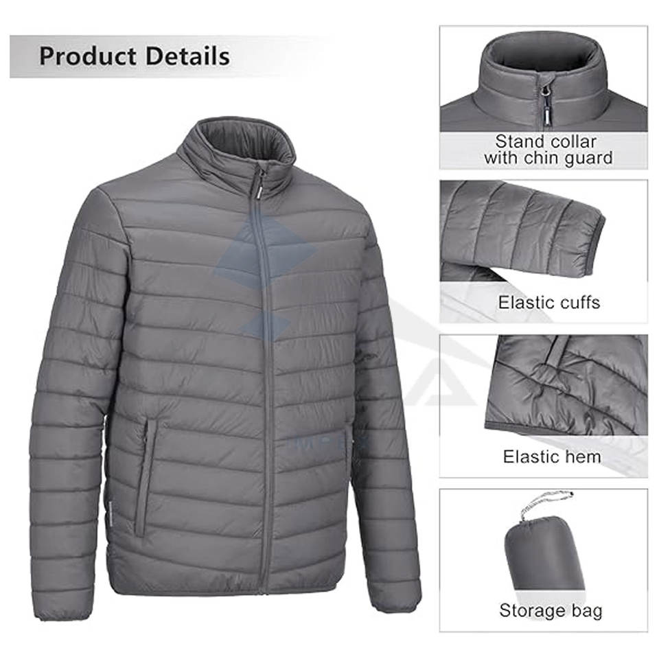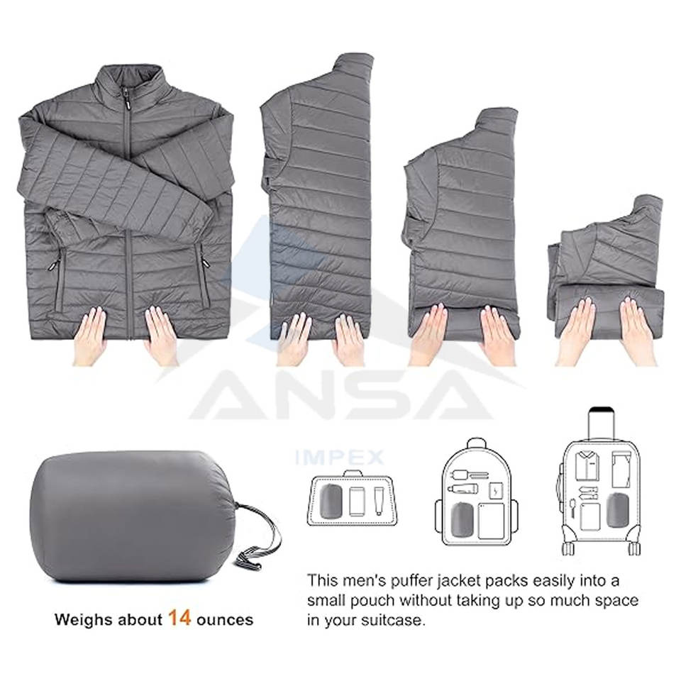 แจ็กเก็ตขนปุยสำหรับผู้ชายแบบบรรจุได้เสื้อโค้ทหุ้มฉนวนกันความร้อนสำหรับเดินทางและเดินป่า