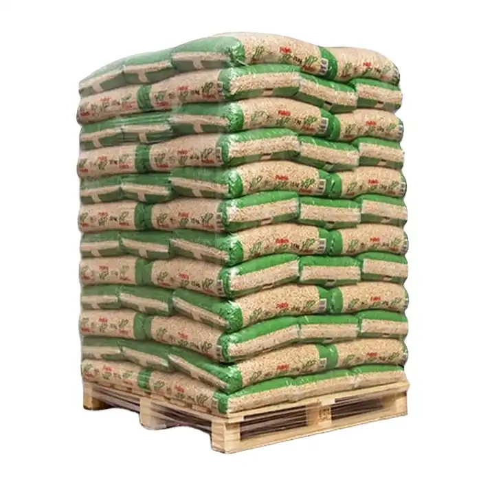 เม็ดไม้สนขายดี ขนาด 2 มม. รูปทรงก้อน บรรจุถุงใหญ่ 1000 กก. สำหรับระบบทำความร้อน ที่มีเถ้า 3.9% และความชื้น 9.9%