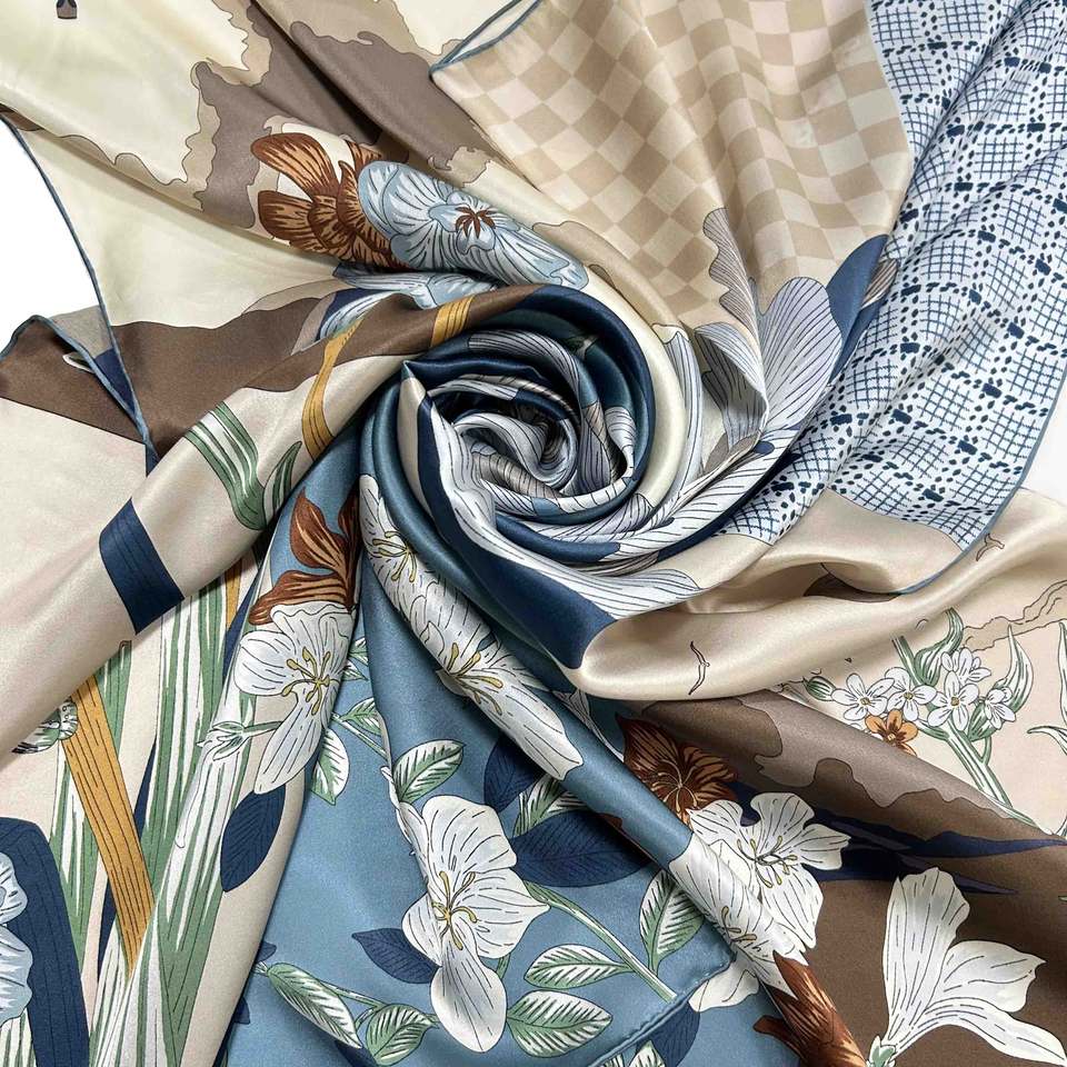 ผ้าพันคอไหมซาตินลายสก็อตขายดี ผ้าคลุมผมไหมสำหรับมัดผม