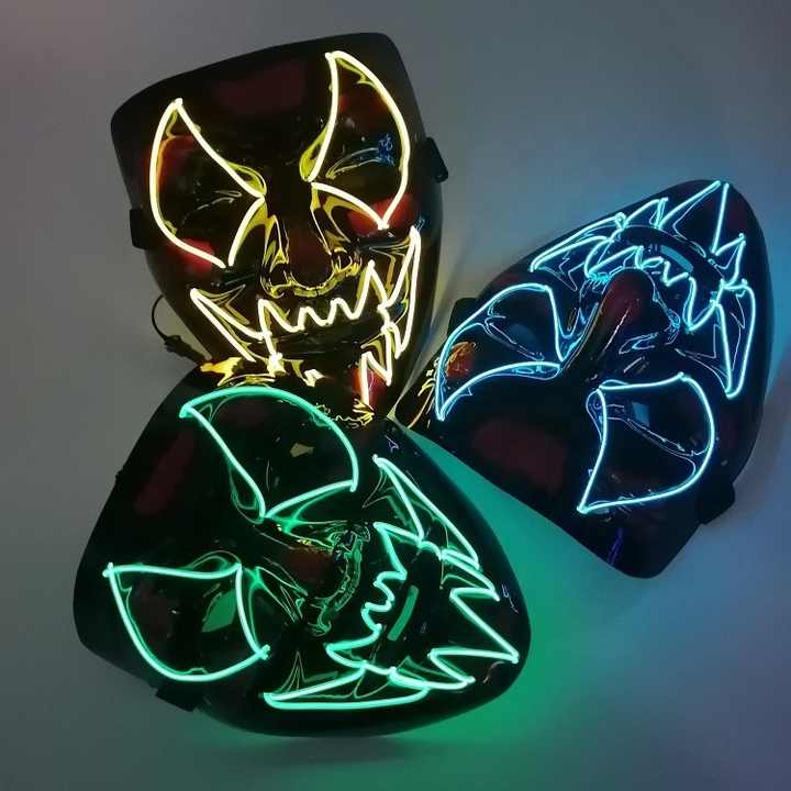 หน้ากากผีพลาสติกขายดี ไฟ LED สำหรับงานปาร์ตี้ งานพรอม อุปกรณ์ประกอบฉาก หน้ากากเรืองแสงไฟเย็น EL สำหรับงานปาร์ตี้ฮาโลวีน