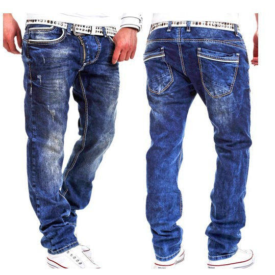 กางเกงยีนส์ผู้ชายไซส์พิเศษกางเกงยีนส์ขาตรงผ้ายืดสีฟ้าผ้ายืดกางเกงแฟชั่นแนวสตรีทสำหรับฤดูหนาว