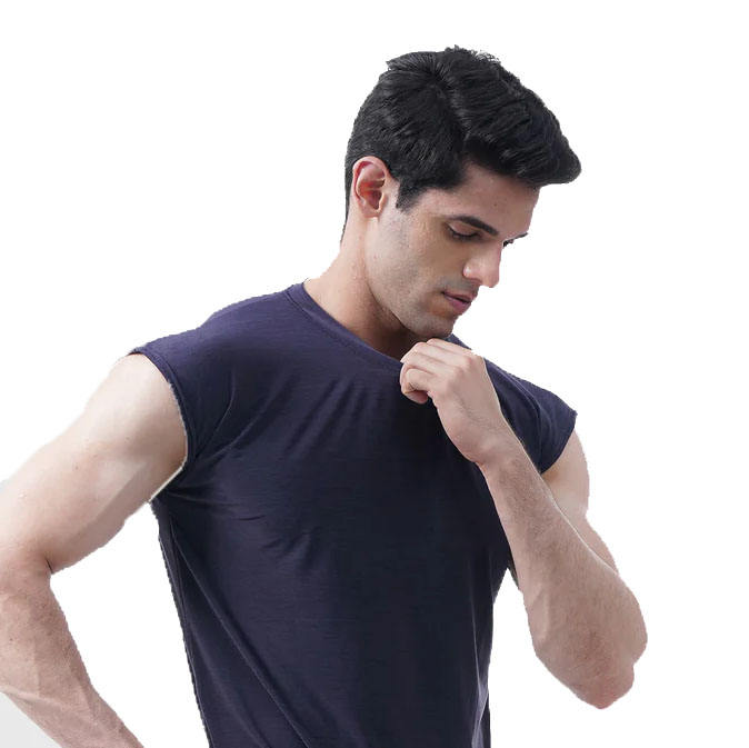 เสื้อกล้ามผู้ชายไซส์ใหญ่พิเศษเสื้อกล้ามยาวไหล่คอกลมแขนกุดว่างผ้าฝ้ายผสม