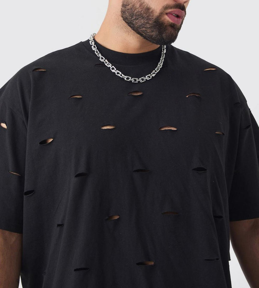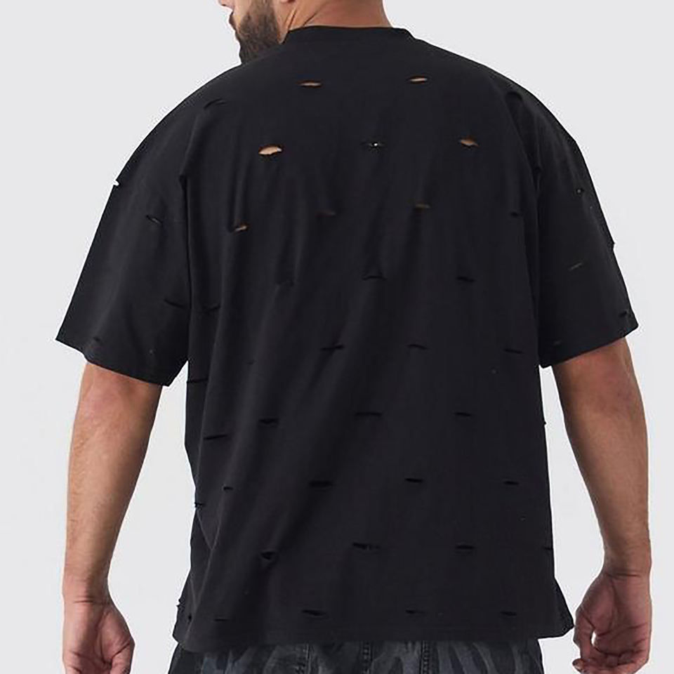 เสื้อยืดผู้ชายขนาดพลัสไซส์พิมพ์ลายโลโก้ O-คอทรงบ็อกซี่ใส่พอดีตัวเสื้อยืดหยาบหยาบแบบฮิปฮอป