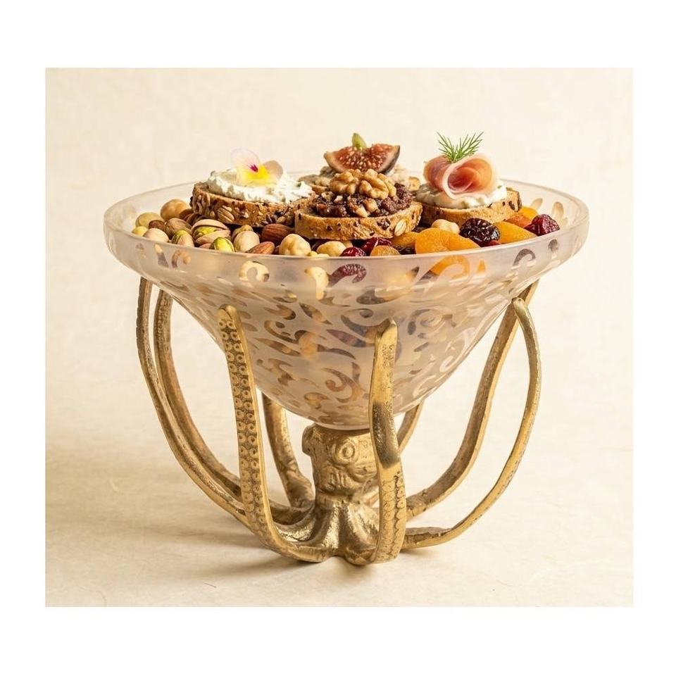 ชามเสิร์ฟอาหารรูปปลาหมึกอะลูมิเนียมขัดเงาและแก้ว ขายดี ของตกแต่งโต๊ะอาหารหรูหรา