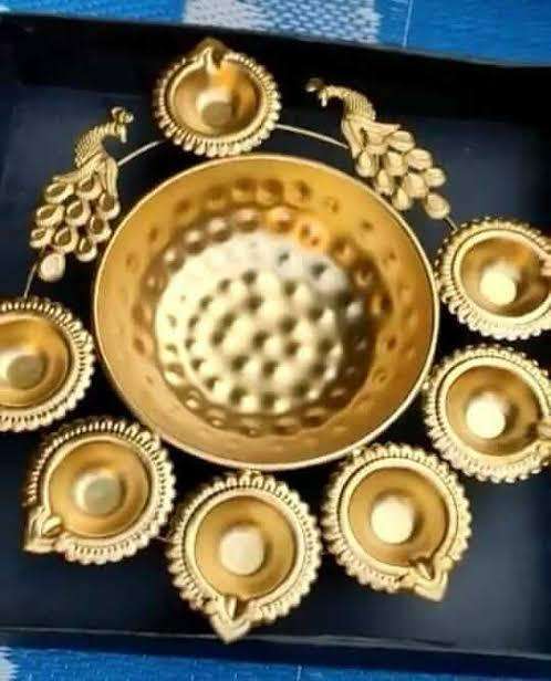 เครื่องประดับ Pooja ขายดีในแพคเกจชิ้นเดียวสำหรับบ้านและงานแต่งงานคำอธิษฐานศิลปะการตกแต่งอุตสาหกรรมด้วยทองเหลืองบริสุทธิ์