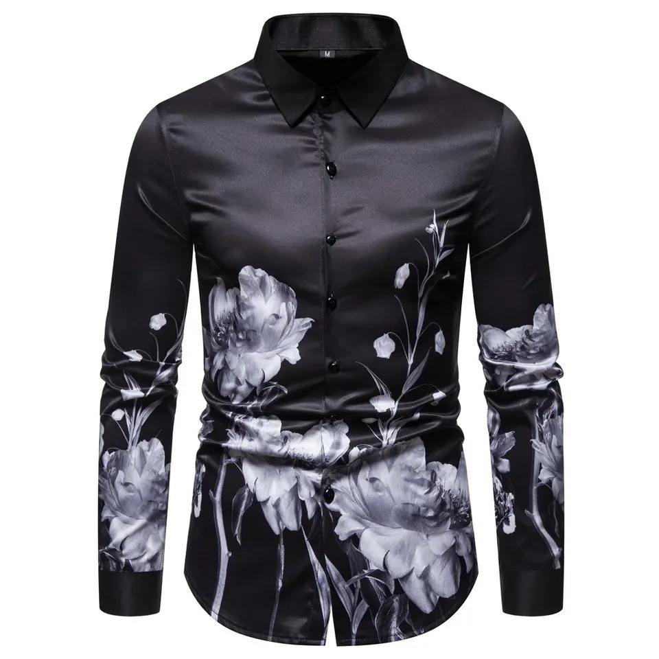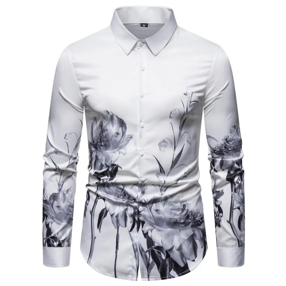 เสื้อฮาวายเดนิมสำหรับผู้ชาย,แขนยาวพิมพ์ลายชายหาดยอดนิยมสำหรับฤดูร้อน