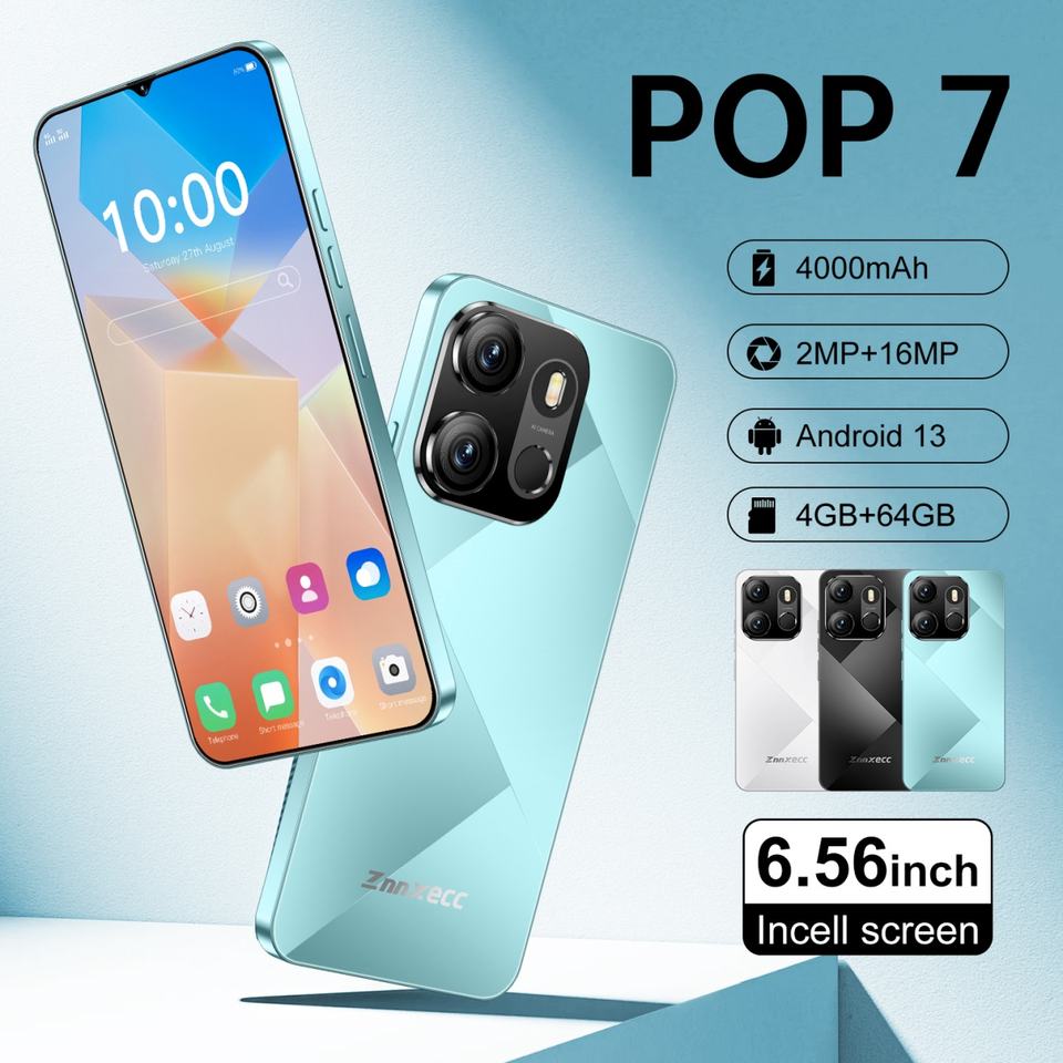 สมาร์ทโฟน ZNNXECC POP7 หน้าจอ HD ขนาดใหญ่ 6.6 นิ้ว รองรับ LTE ระบบ Android ได้รับการรับรองจาก Google เวอร์ชันสากล ภาษาเยอรมัน/ฝรั่งเศส ขายดีเป็นที่นิยม