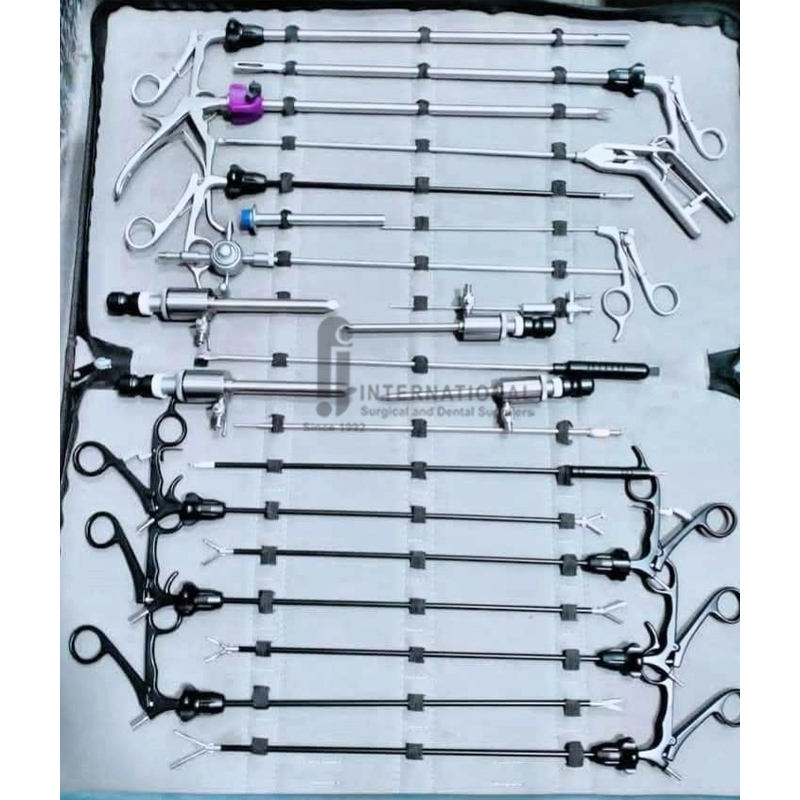 ชุดเครื่องมือผ่าตัดผ่านกล้องแบบแมนนวล 28 ชิ้น คุณภาพพรีเมียม ขายดี พร้อมแท่นวางกล้องผ่าตัด