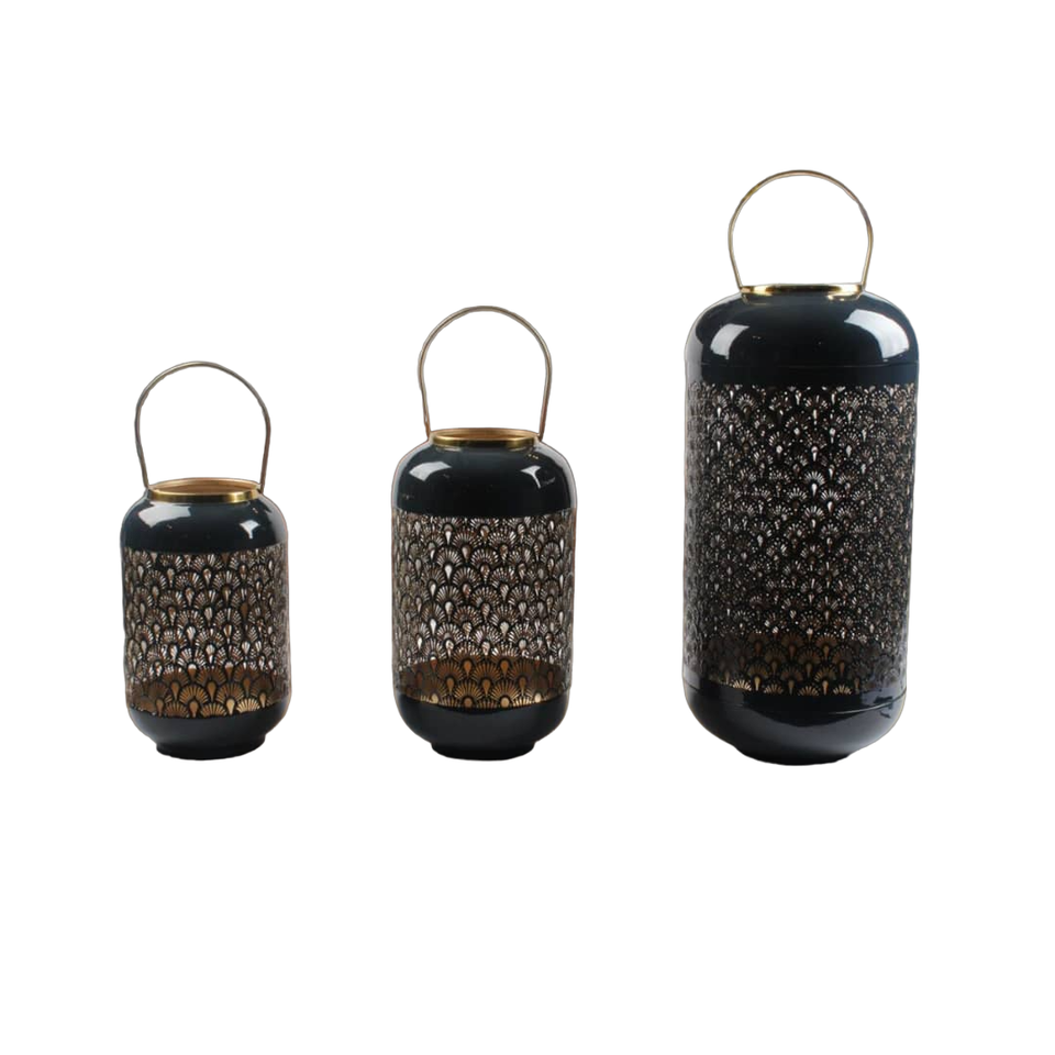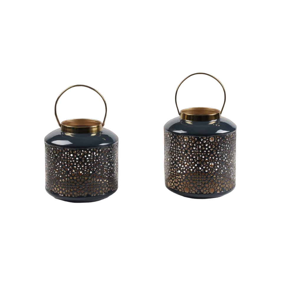 Hot Selling Premium Black Coated Metal Lantern Set 2 Different Sizes for Indoor Home Hotel Christmas Decorations
