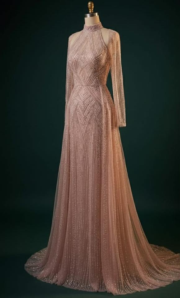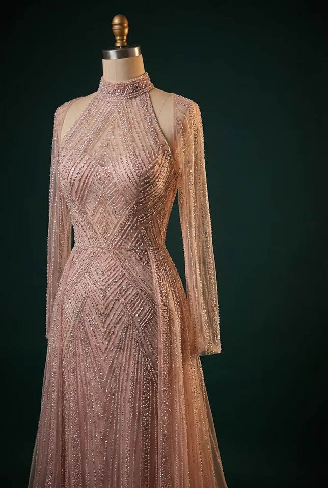 ชุดราตรีปักคริสตัลพรีเมียมขายดี แขนยาวเต็มตัว สำหรับงานเลี้ยงอย่างเป็นทางการ จากผู้ผลิต