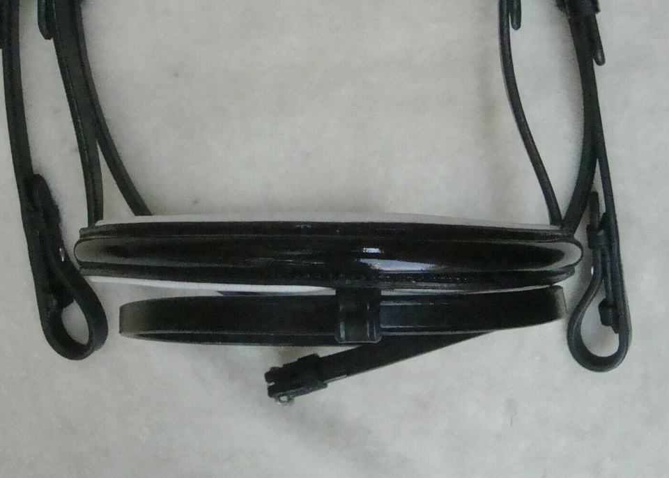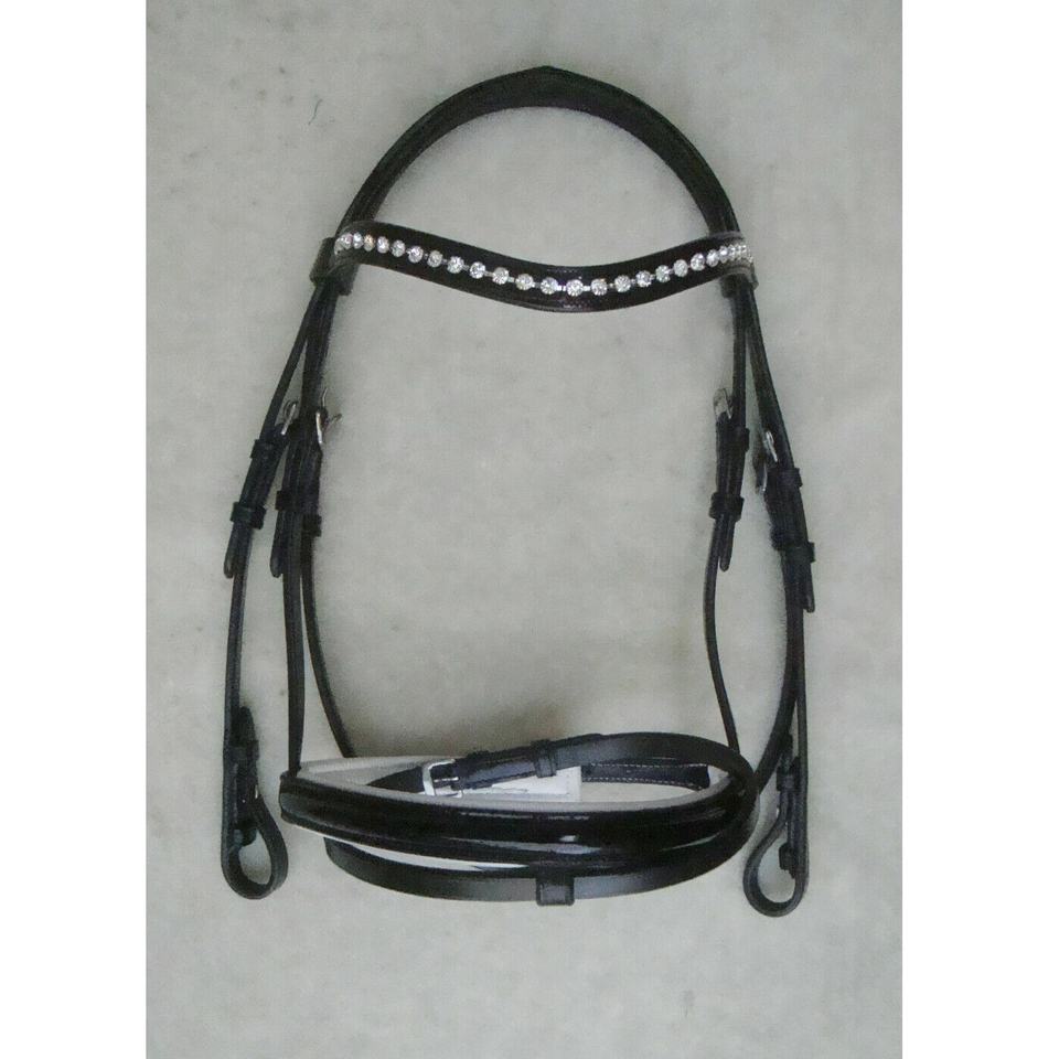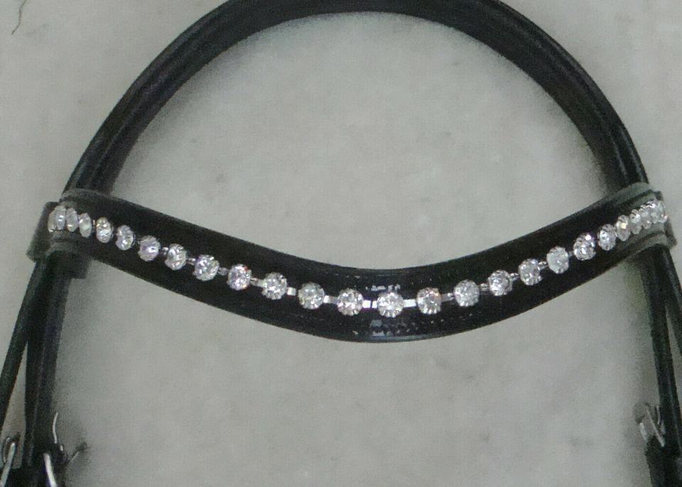 สายรัดจมูกม้าหนังแท้คุณภาพพรีเมียมแบบย้อมสีสไตล์อังกฤษ สีดำ พร้อมสายคาดหน้าผากลายคลื่นใส ขนาดฟูลโคบ ขายดี