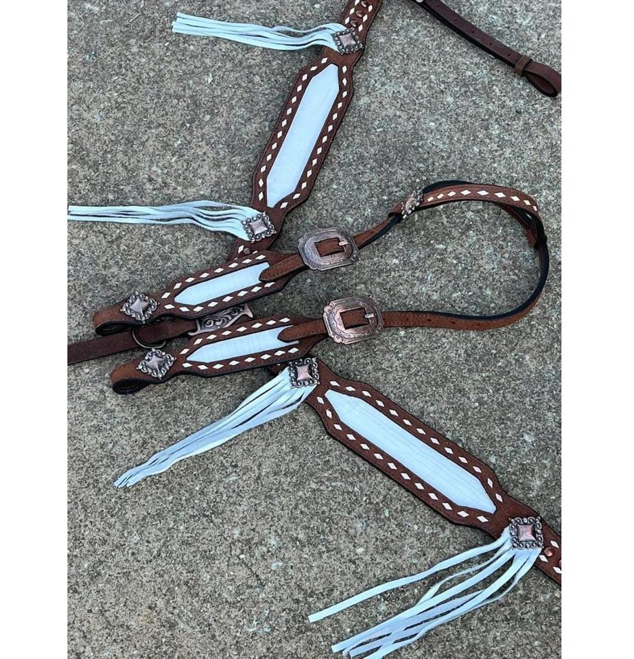 ชุดหมุดปักหนังสำหรับขับขี่สไตล์อินเดียแบบหูข้างเดียวตัดขอบลายดอกไม้เครื่องมือกลัดหน้าอกปกเสื้อม้า