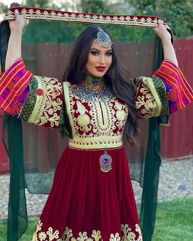 ชุดเดรส Afghan kuchi สำหรับผู้หญิงชุดปาร์ตี้งานแต่งงานประดับด้วยเลื่อมลูกไม้ของตกแต่งเอวธรรมชาติ
