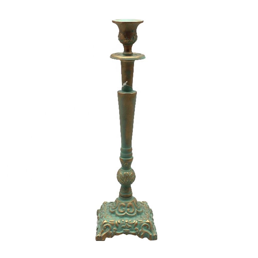 เชิงเทียนตกแต่งทำจากอลูมิเนียมโบราณที่วางเทียนแบบแท่งสีทองมีสีเขียวดีไซน์ทันสมัย